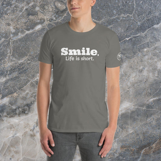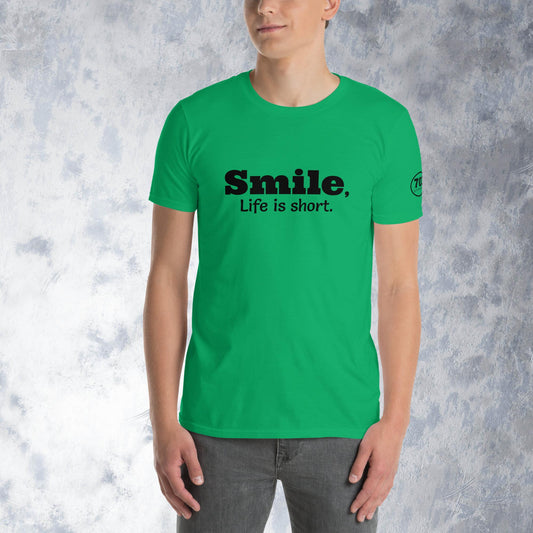 SMILE, LIFE IS SHORT (alternate colors) Short-Sleeve Unisex T-Shirt Gildan 64000